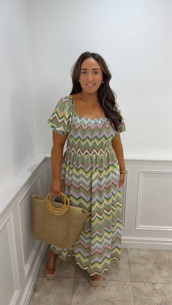 Kim ZigZag Elastic Chest Printed Maxi Dress Green