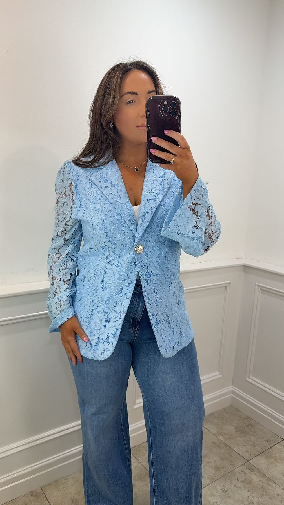 Hope Lace Button Detail Blazer Baby Blue