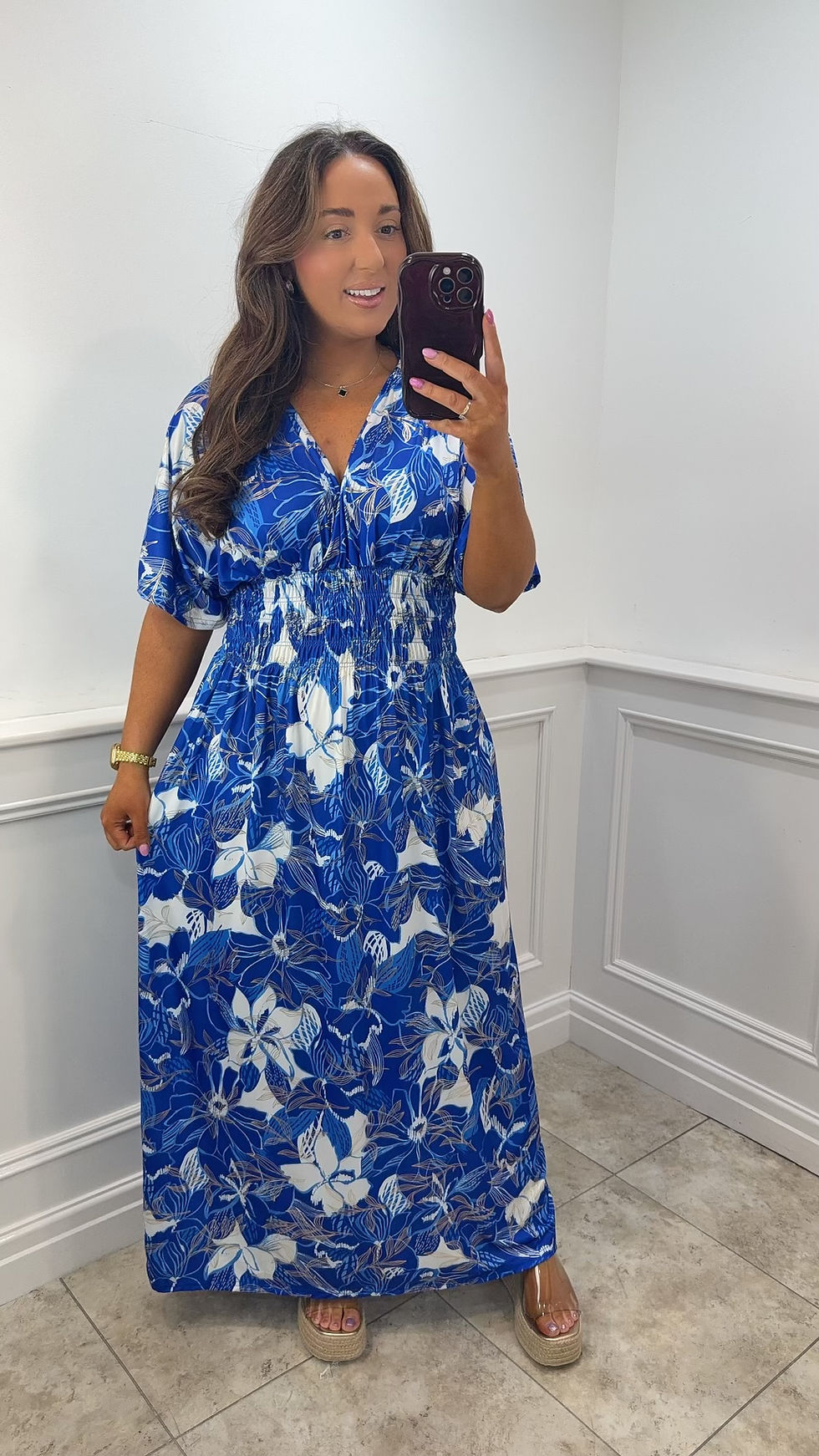 Montana Flower V Neck Slinky Foil Magic Maxi Royal Blue