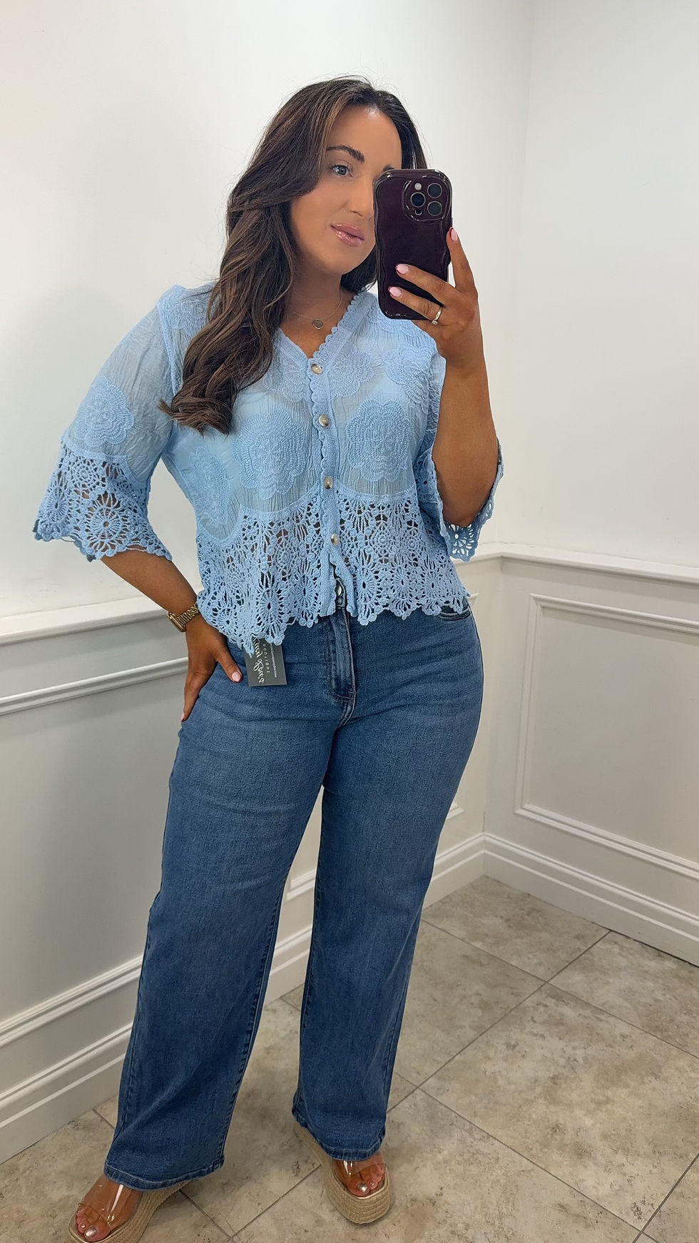 Ashley Daisy Chunky Knit Jumper Denim Blue