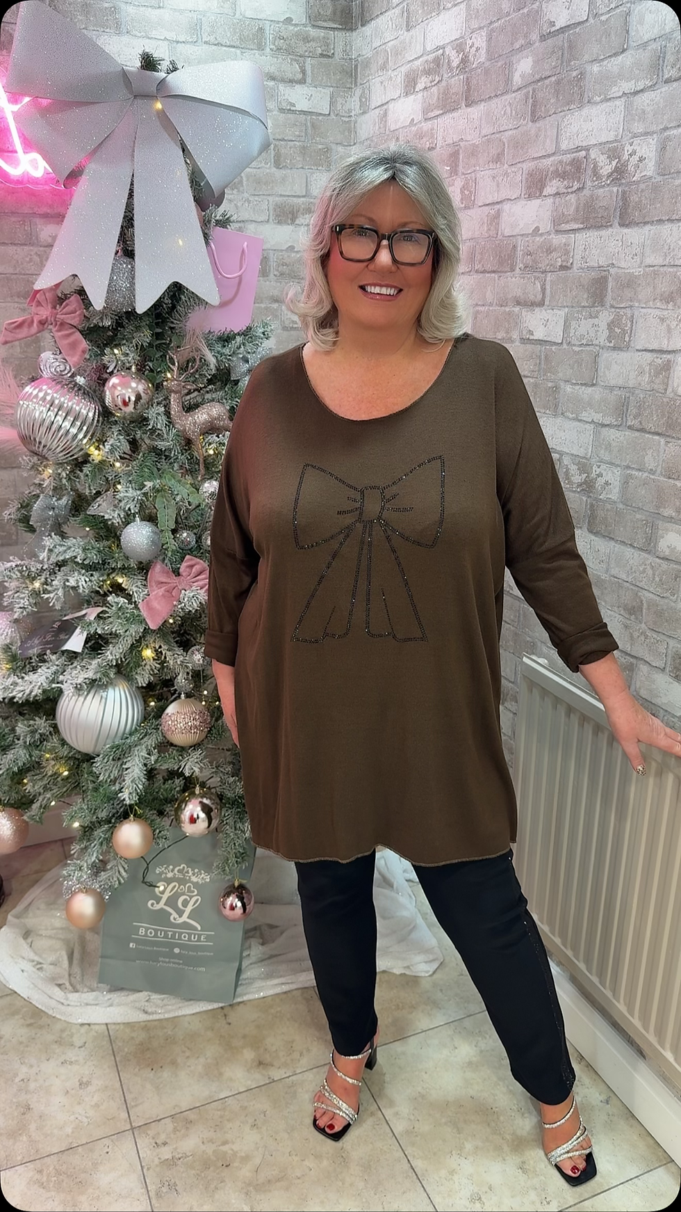 Martha Gem Sparkle Soft Knit Bow Jumper Chocolate