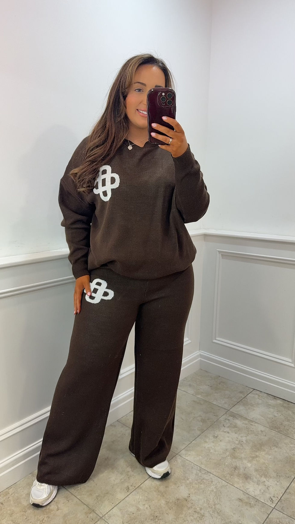 Violet Logo Knitted Wide Leg Lounge Set Chocolate